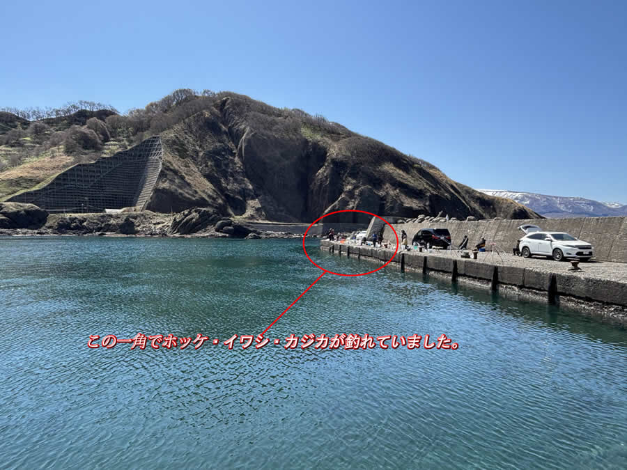 野塚サーフの後に幌武意漁港へ。ファミリーや単独アングラーで賑わっていました。拝見するとかなりの数のイワシ、ホッケとカジカが数匹釣れていました。イワシは30cm前後くらいあり食べ応えがありそうです(笑)。